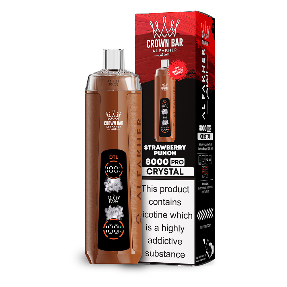 Indulge in the juicy burst of sweet strawberries with Strawberry Punch - Al Fakher 8000 CRYSTAL. This disposable vape delivers a delightful and flavorful experience with each puff.